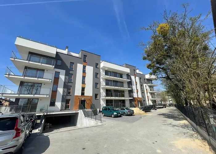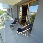 The apartment offers a kitchenette with a microwave, a refrigerator, and kitchenware, along with coffee/tea making machines. Piaski Skrzyzowanie bus stop is a 5-minute stroll away. A terrace invites guests to relax on.